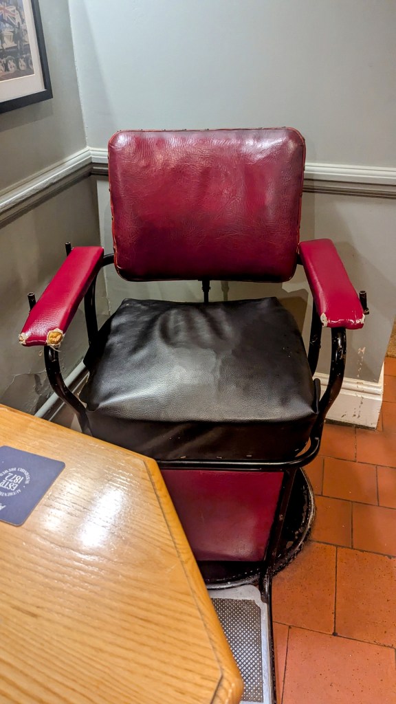 It was in the Fountain in 2001 that I sat taking in the events of 9/11 while looking after two toddlers, a surreal day. The pub hasn’t changed at all since then, still that fish, those photos of the Kings School alumni, and some old skool seating modelled by Mrs RM.