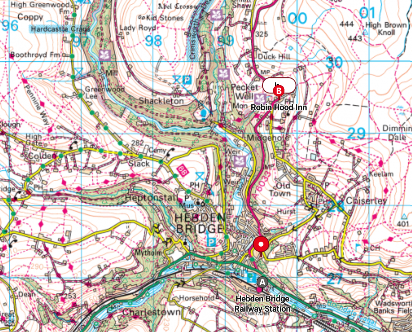 Just before COVID I drove three (3) fellow tickers into the hills above Hebden in a straining Aygo to tick the wonderful Hare & Hounds. In 2025 a similar walk to the Robin Hood was rather less stressful, though the footpath runs out just when you want it most.