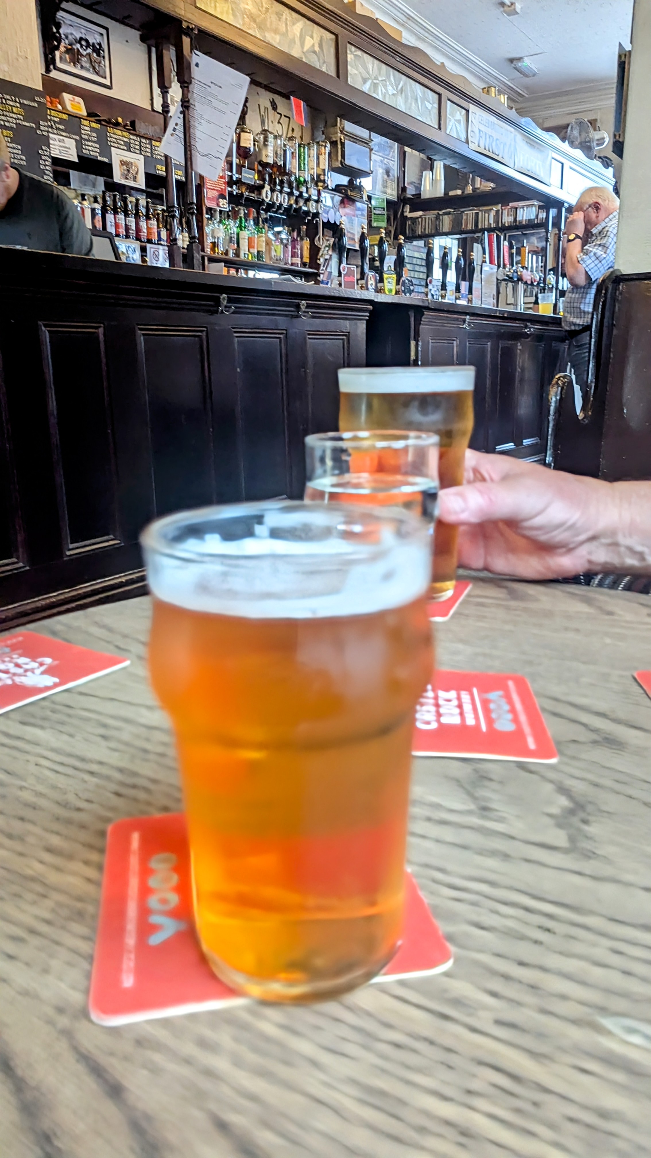 I did the White Horse with LAF and Quinno, then we joined Andy and Pete and Jon in the Tiger. The same group then went on to the Neptune, where LAF made an exit, as did Jon. The remaining four then went on to the Alexandra (are you following this?), and I talked Quinno into having a final half each in the Victoria.