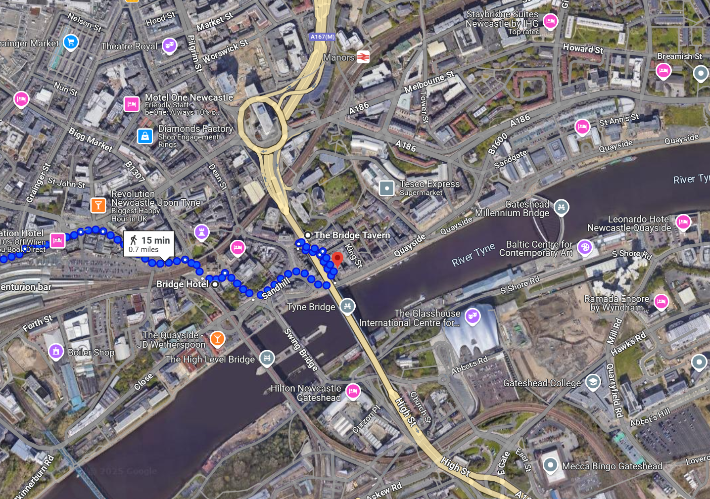 during which Mrs RM took the initiative and found us the Bridge Tavern, literally under the Tyne Bridge.
