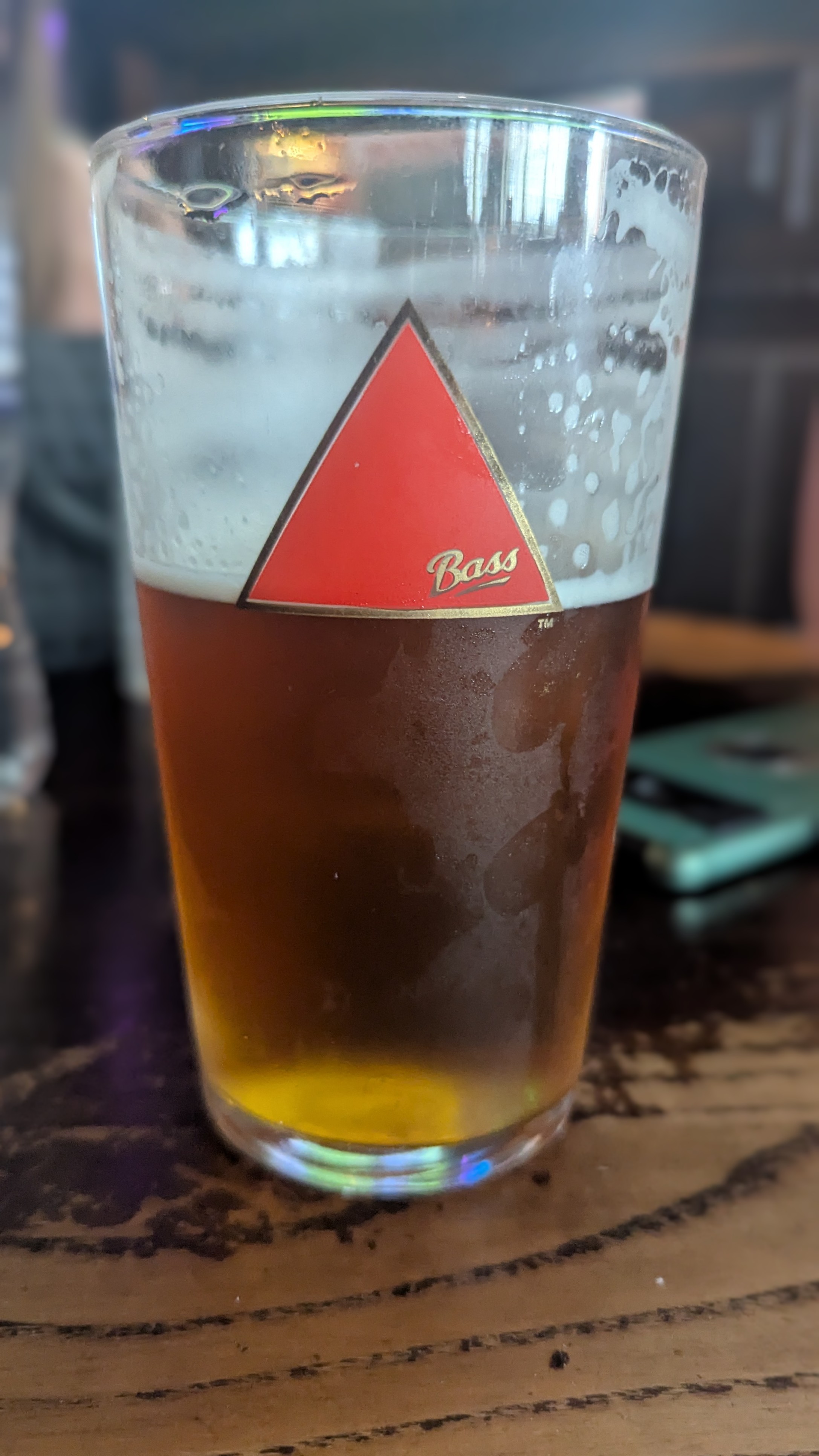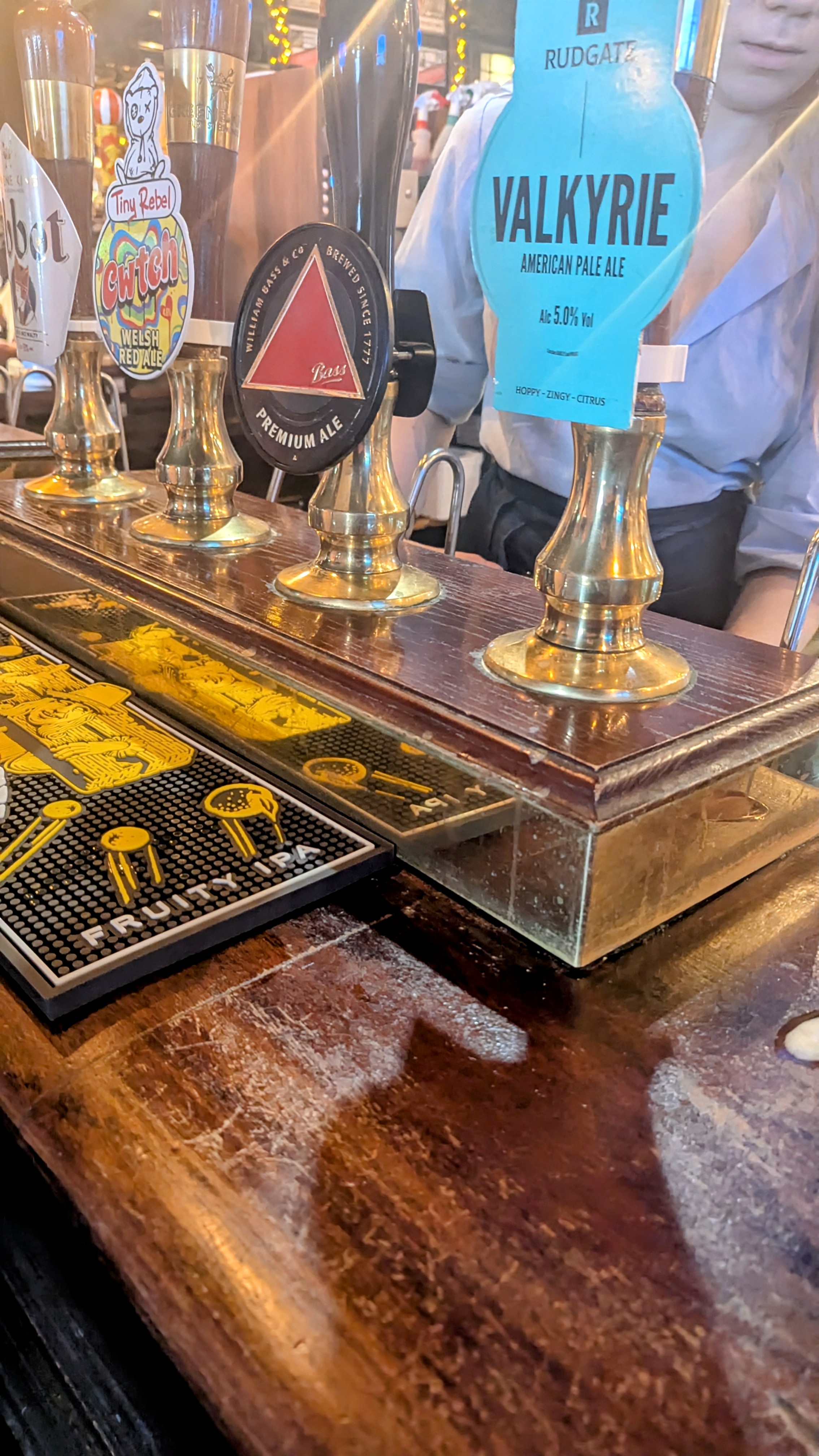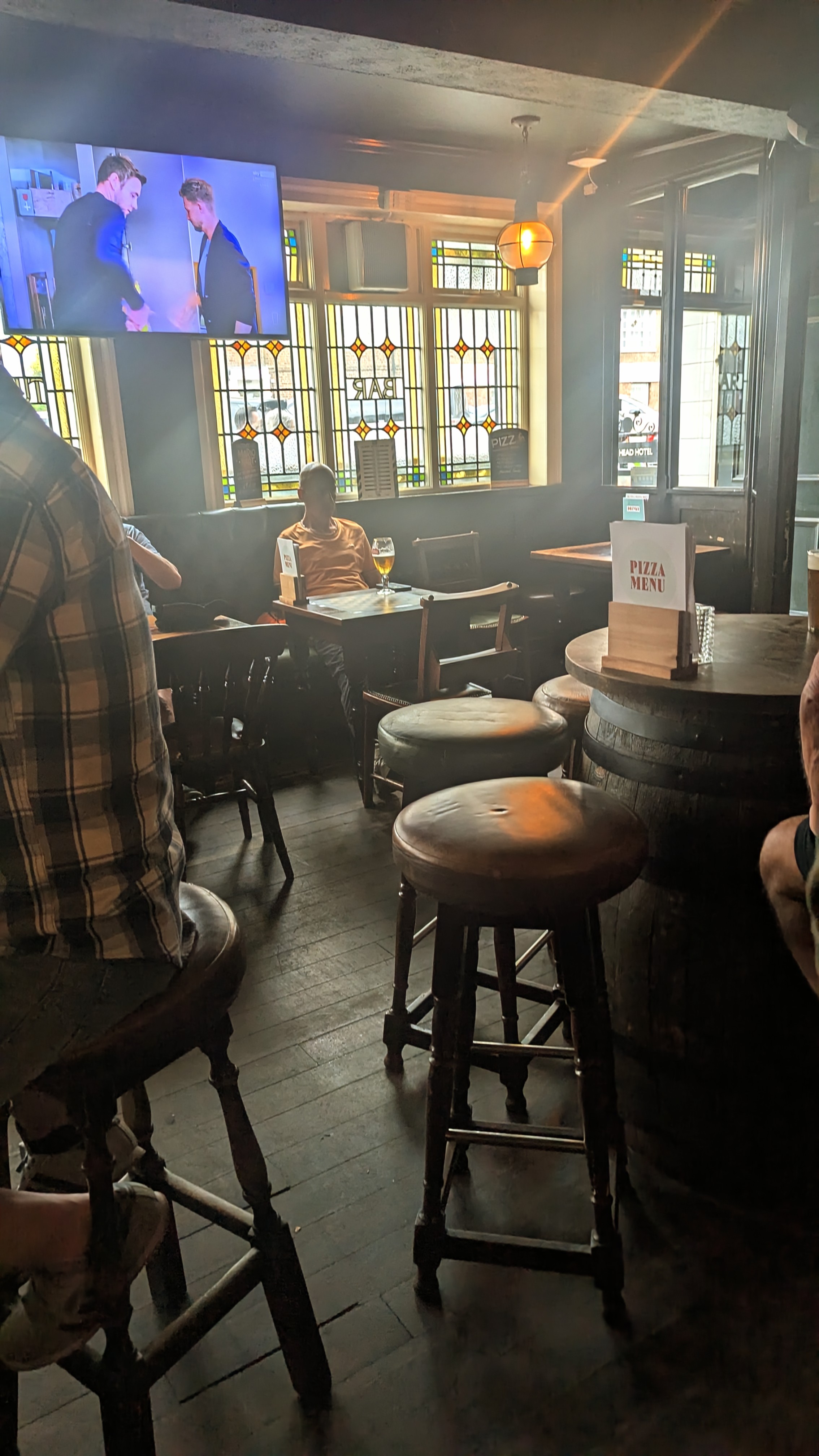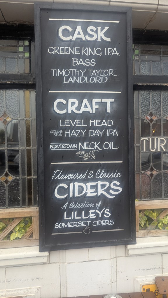 And this was a good Bass, cool and crisp (NBSS 3.5). Karen had researched Bass availability, and I’d mansplained that the famous Tynemouth Lodge had ditched the red triangle due to availability issues, though apparently they’ve kissed and made up (not that there was any chance of getting us walking the mile west in the heat/rain).