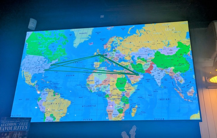 This map on the TV screen had us perplexed. What do those green triangles mean.