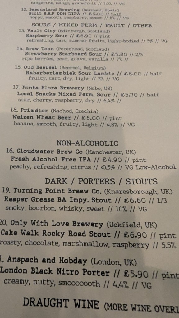 A pint of ever reliable Cloudwater AF at the ever reliable Old Shoe was actually quite refreshing, but going low while Mrs RM was on the Burning Sky was always a daft idea.