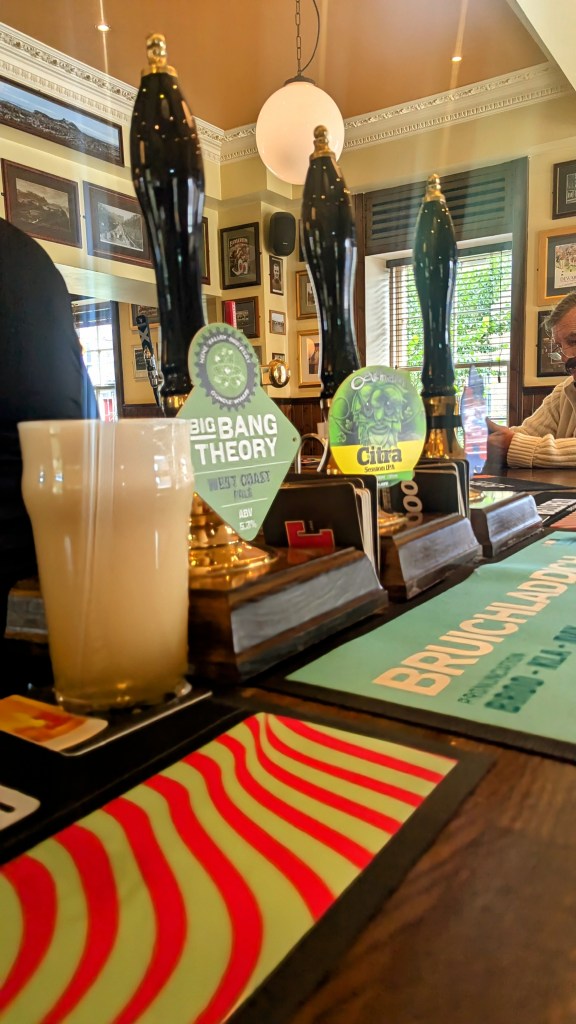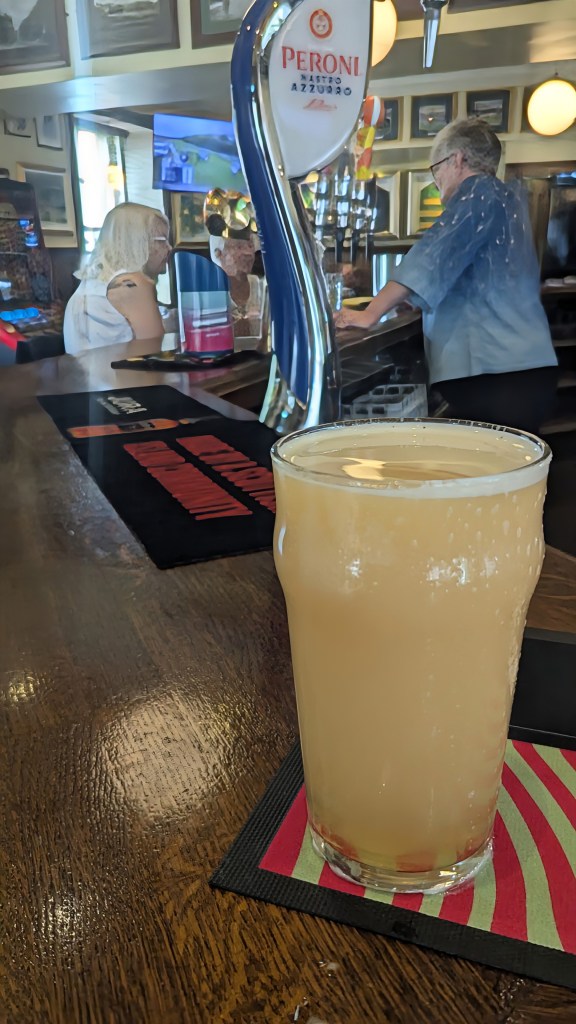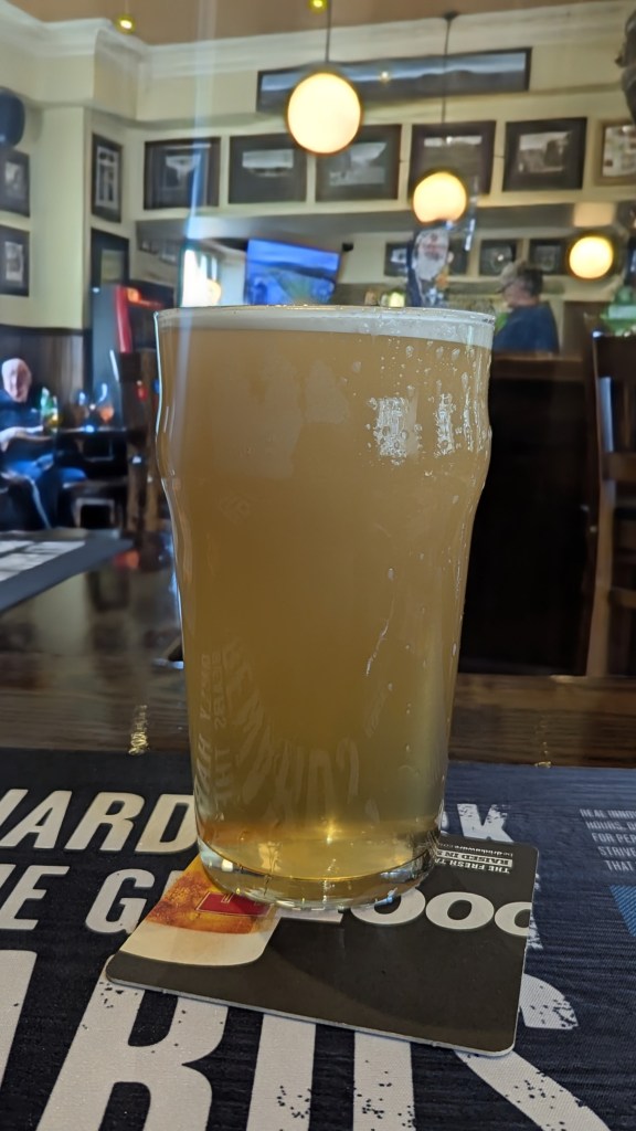 a tremendous welcome (“There ya go darling“), a pint of Citra that takes a minute to clear,