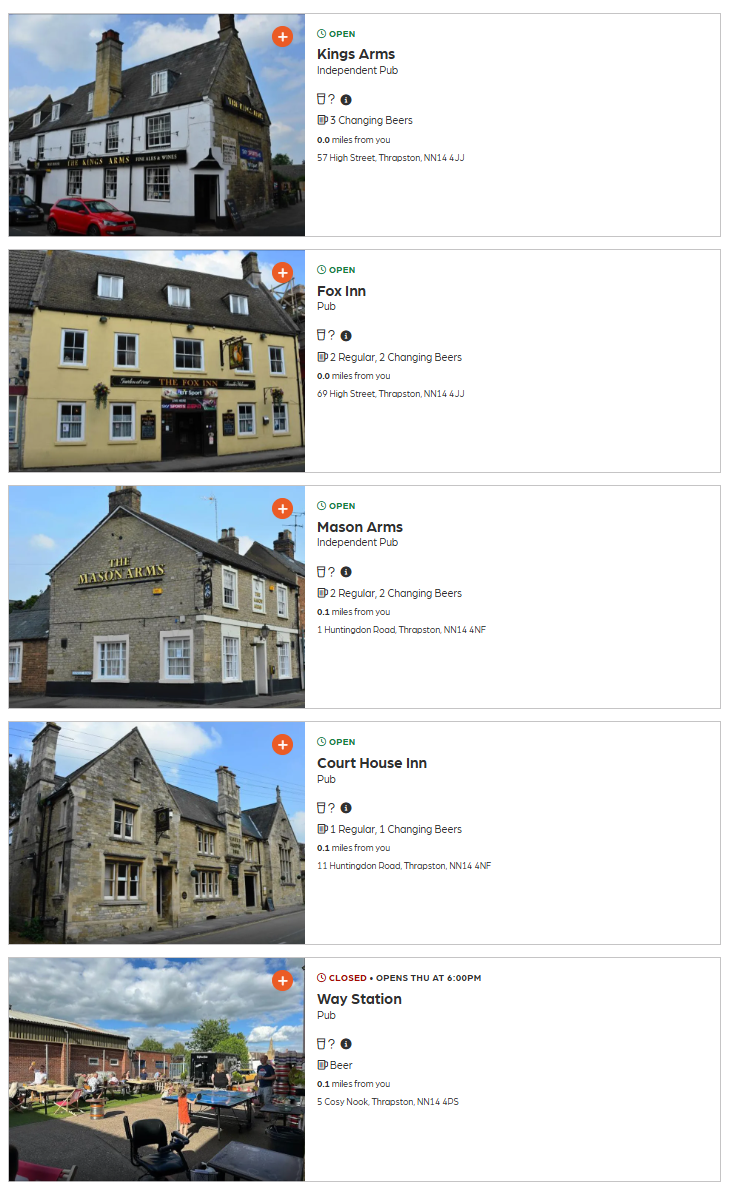 I’ve never visited a GBG pub in Thrapston (pop. 7,238), and judging by the lack of Pint Pots on CAMRA neither has anywhere else.