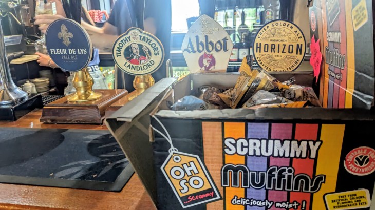 but all the warnings at the bar are of low beams, which I dutifully connect my bonce with on collecting my pint of Landlord from a pleasingly dull range.