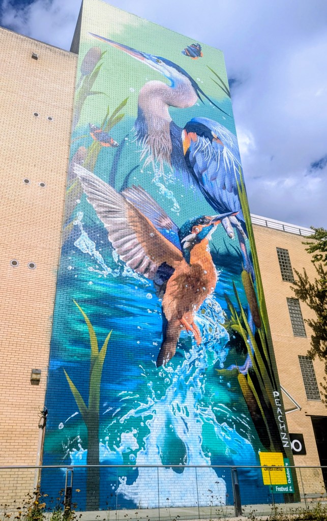 Good art trail, too. This one is called, bizarrely, “Heron & Kingfisher” by Peachz,