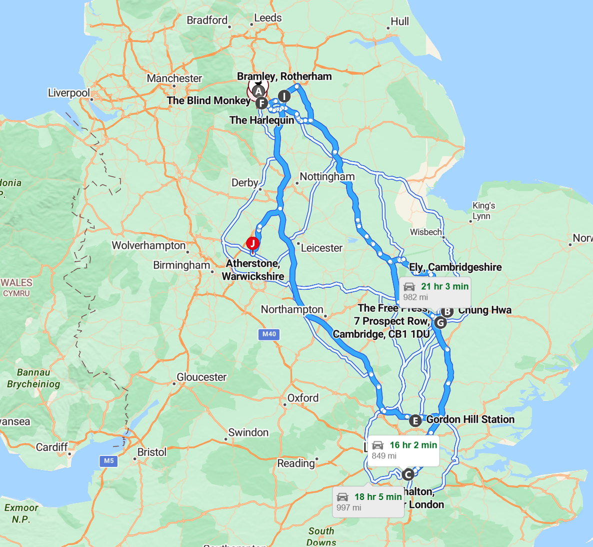 “Mostly trips between Sheffield and Waterbeach last month, but fifty-nine pubs, not a bad return.”