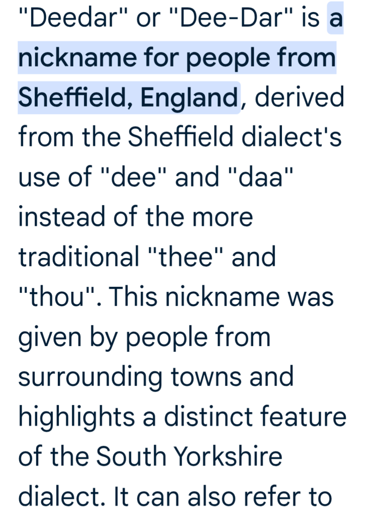 “Nah mate, I’m from Sheffield !”.