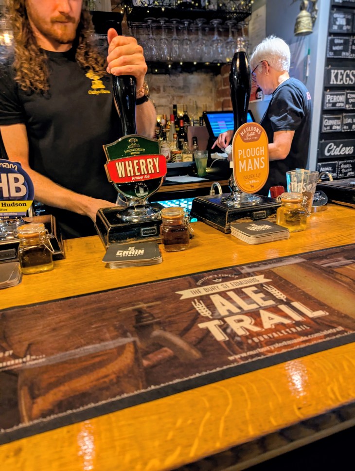 The Oakes Barn has the feel of a theatre bar, and always seemed a bit marginal a GBG entry (to someone who wasn’t a regular so is ill-equipped to comment), though it bows out with the maximum 3 pints pots on the CAMRA website. Fair enough on the basis of this bellwether Woodfordes Wherry, an excellent 3.5.