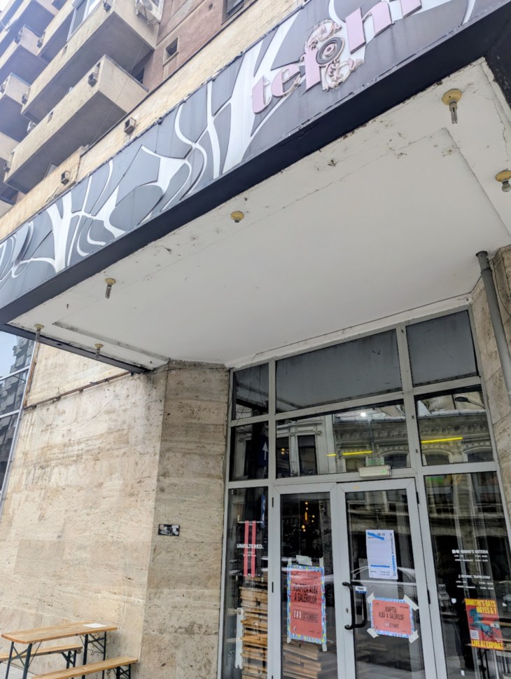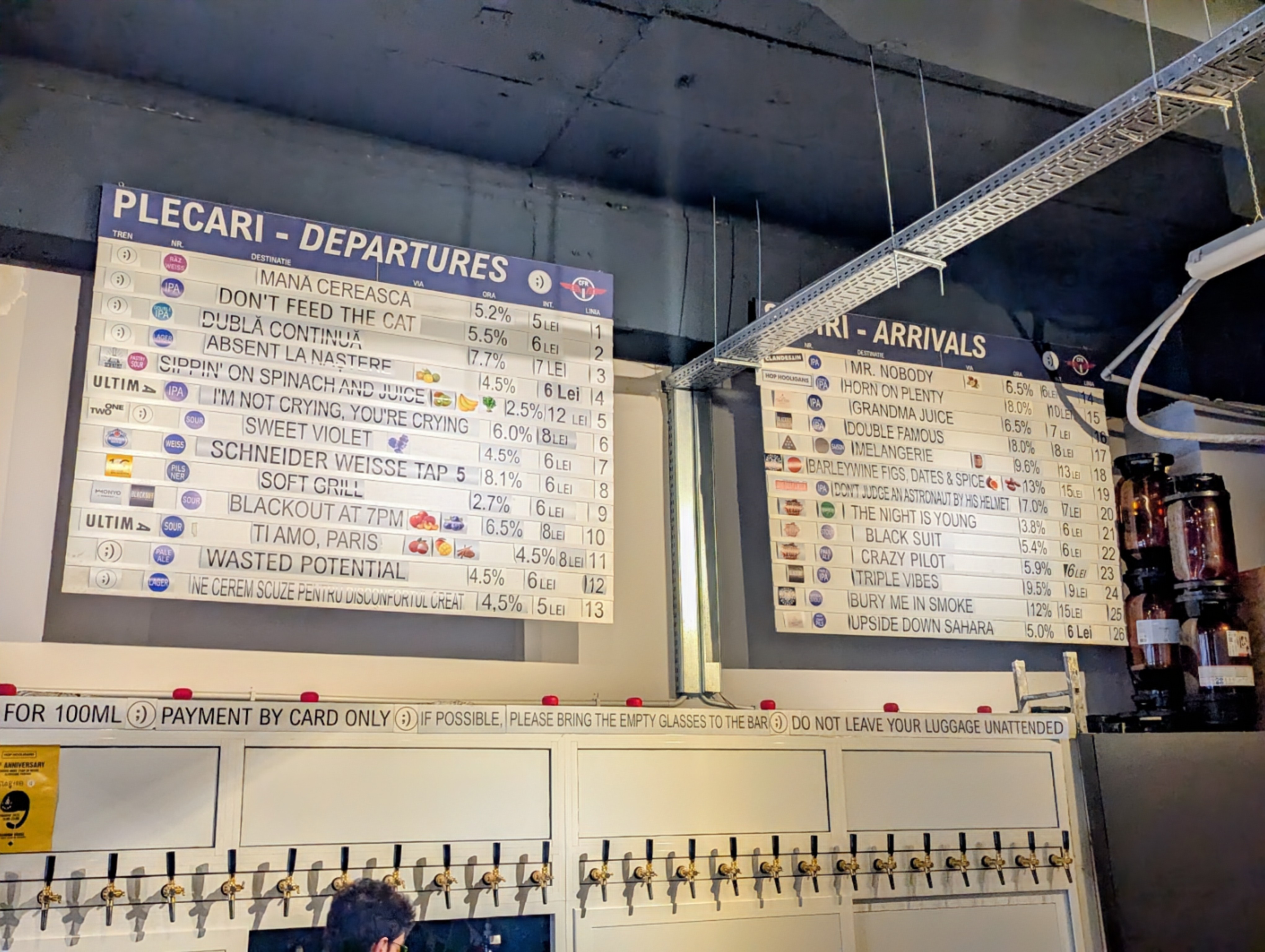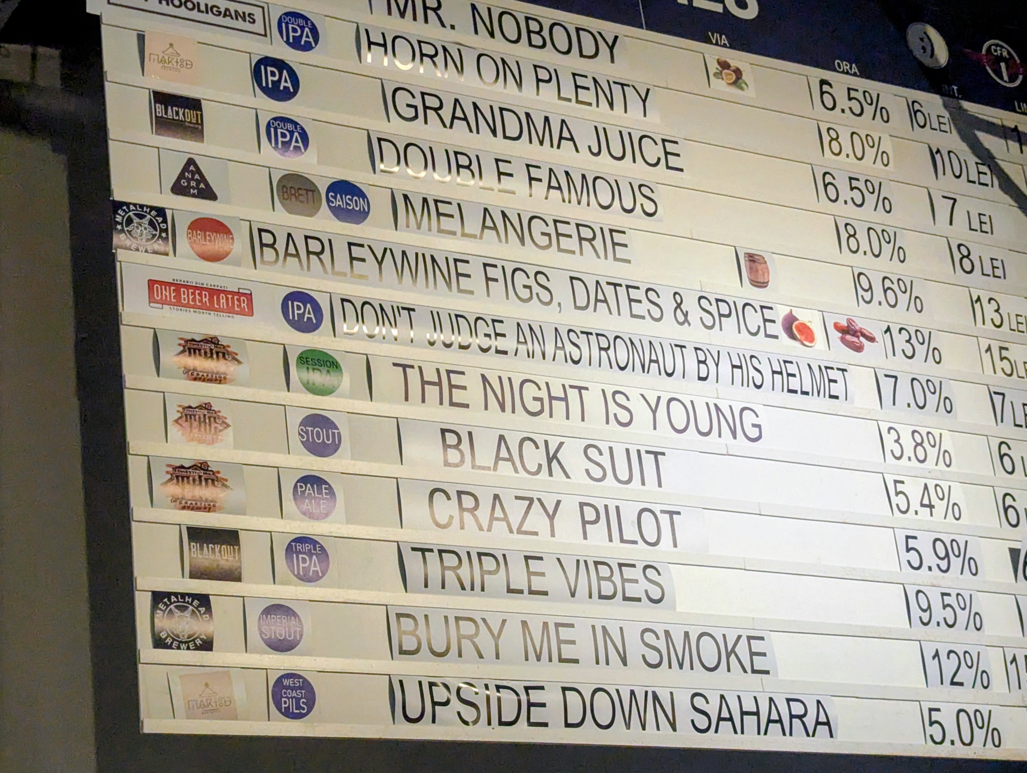 This is the Bucharest version of Manchester under the railway arches. There’s an unreadable beer board with words like “spinach” and “cat” and “Grandma”, rather than “mild”, “bitter” and “Dizzy Blonde”,