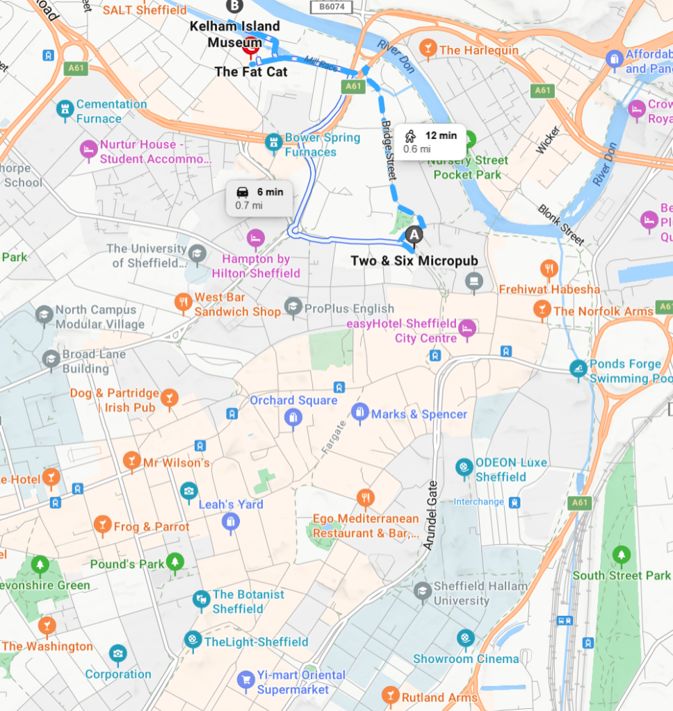 I don’t do beer festivals (or tasters, or dimpled mugs) but I also don’t turn down invites from Pub royalty, either, so put principles aside and joined Alfie/Ian/Mr Chelsea on his Sheffield overnighter, starting with a quick half in them Two & Six.