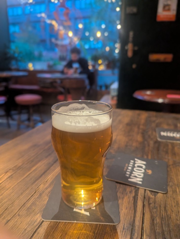 Ian arrived as I was finishing a half (sorry) of Lenton Lane (3.5), downed his own half in 20 seconds, and headed to Kelham.