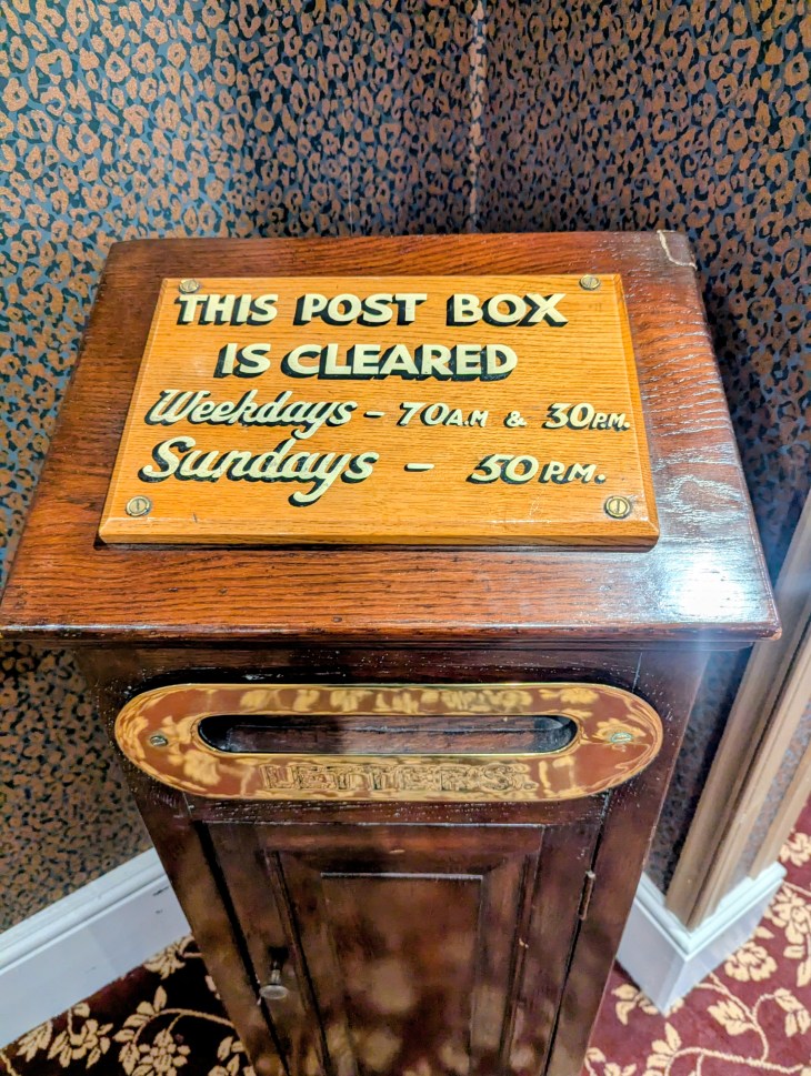 Interesting postbox – Saturday used to be classed as a weekday then? Or perhaps no post was ever collected on a Saturday.