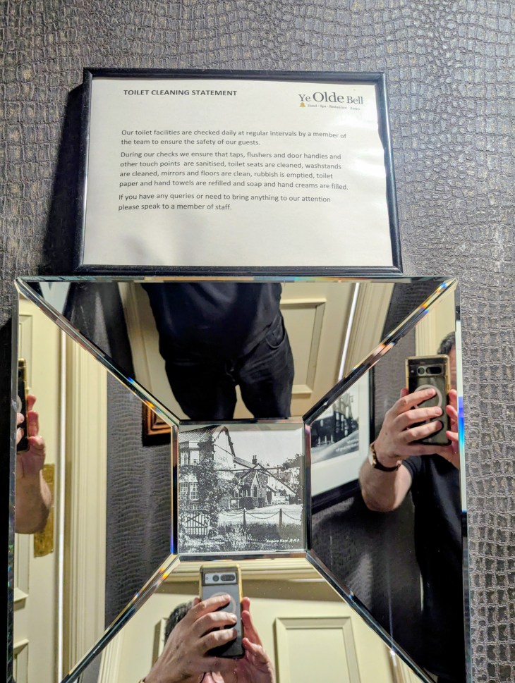 You need to walk past several interception points where you feel you might be asked “Can I HELP you Sir”, if you’ve ever nipped in the Feathers in Ludlow for a **** you’ll know what I mean, but it’s all cheery and normal till you get to the bar (mainly high tables) and the Landlord splutters out.