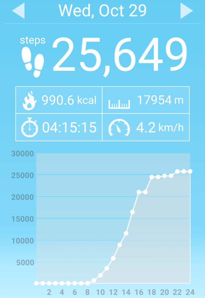 “the wear and tear of 25,000 steps catching up with Mrs RM.”