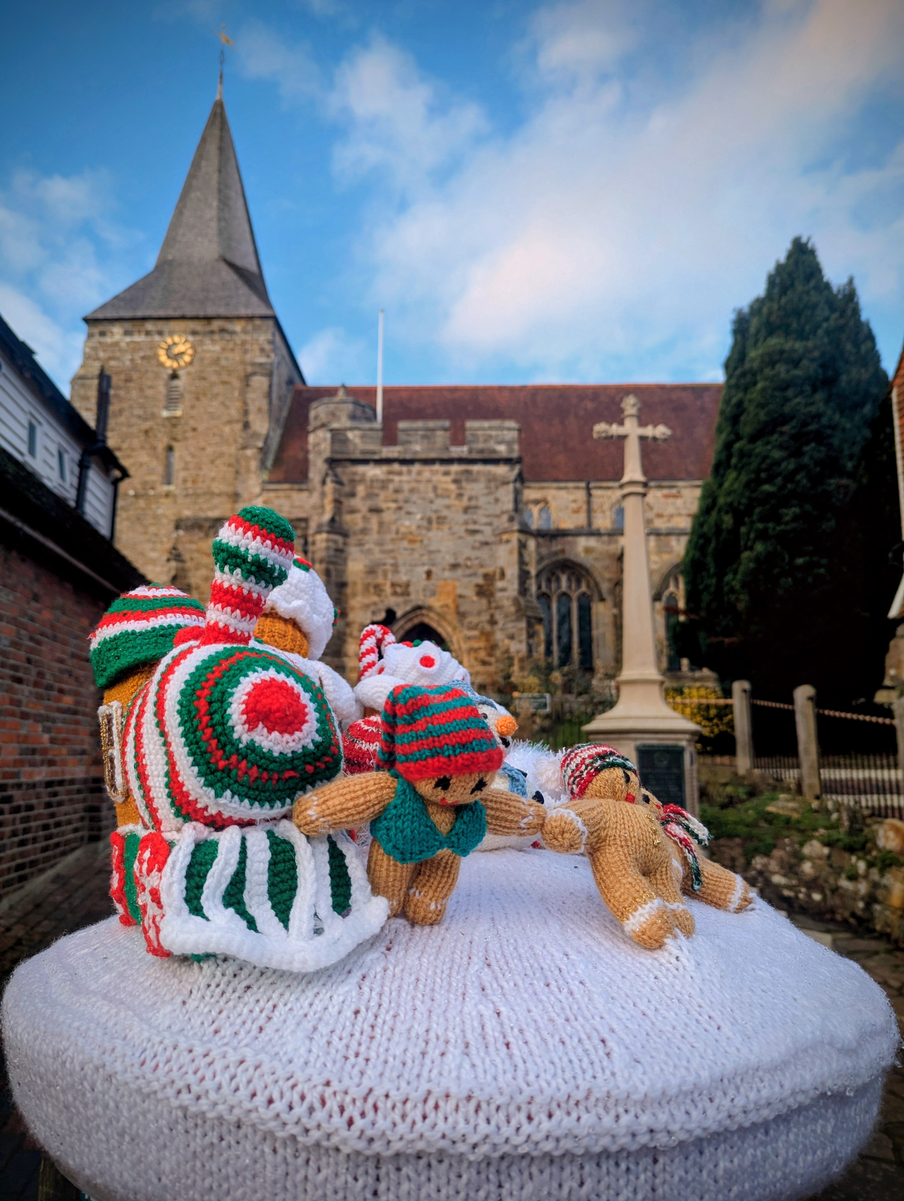 What a cute looking place. Have you noticed those knitted figures on postbox toppers can never stand up straight? They all need a thick piece of wire woven into their wooly bodies to aid in their posture.