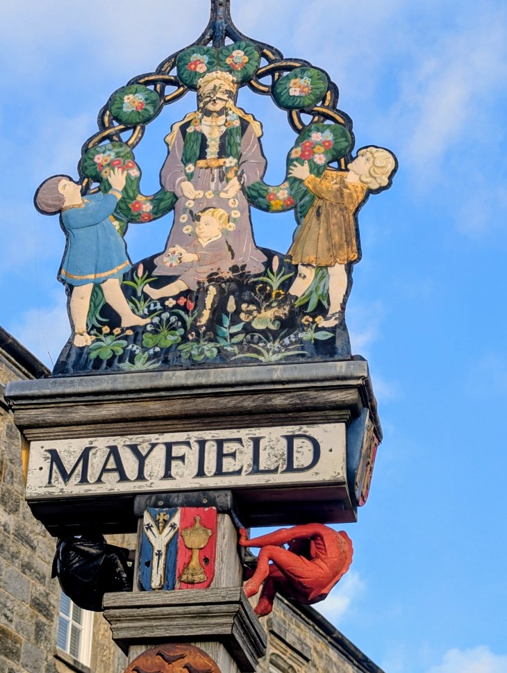 Mayfield is very pretty and the surrounding countryside is pretty too. It’s always an uphill walk at the end if starting from Mayfield. A by pass was built in the late 1980s using the disused railway track bed which helps to keep the High Street quiet.