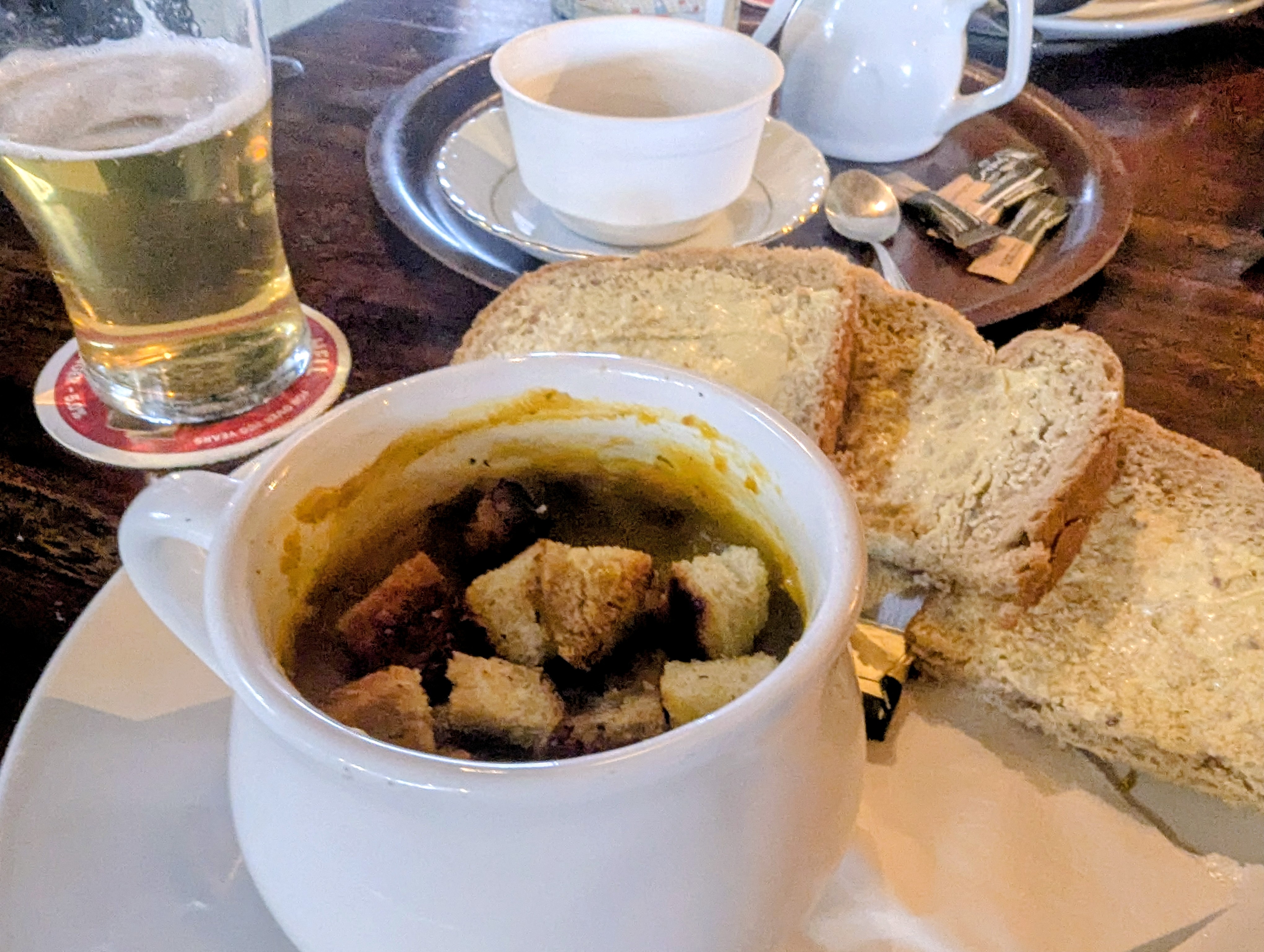Mrs RM had feasted in similarly simple style a week ago on her own birthday; home made vegetable soup washed down with a pint of Kent’s “Quiet American” (NBSS 4) in the Shipwright’s Arms.