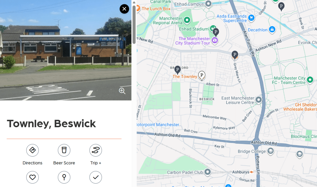 Note, map below, the astonishing paucity of pubs near the Etihad. I was talking to a couple of Everton fans, lovely lads, and they reckon there’s more places to drink near their new ground by the Mersey than at City.