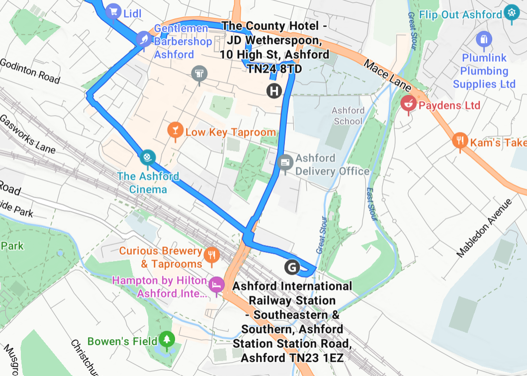 The County Hotel must be one of the few Spoons outlets not to have been renamed. Ashford’s other hotel, the George, used to be a decent place to meet up, back in the day (50 years ago), but I strongly suspect most of the town’s other boozers have slowly given up the ghost.