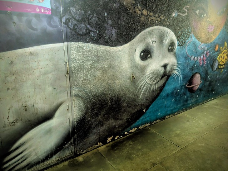 And there was real joy in the arty underpass at Carlisle Parade as we spotted the seal I’d been throwing pebbles at earlier.