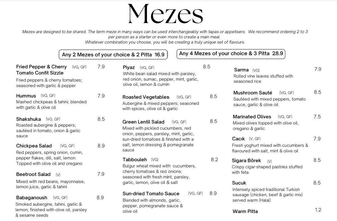 and a baklava/Turkish delight combo without calories noted on the menu.
