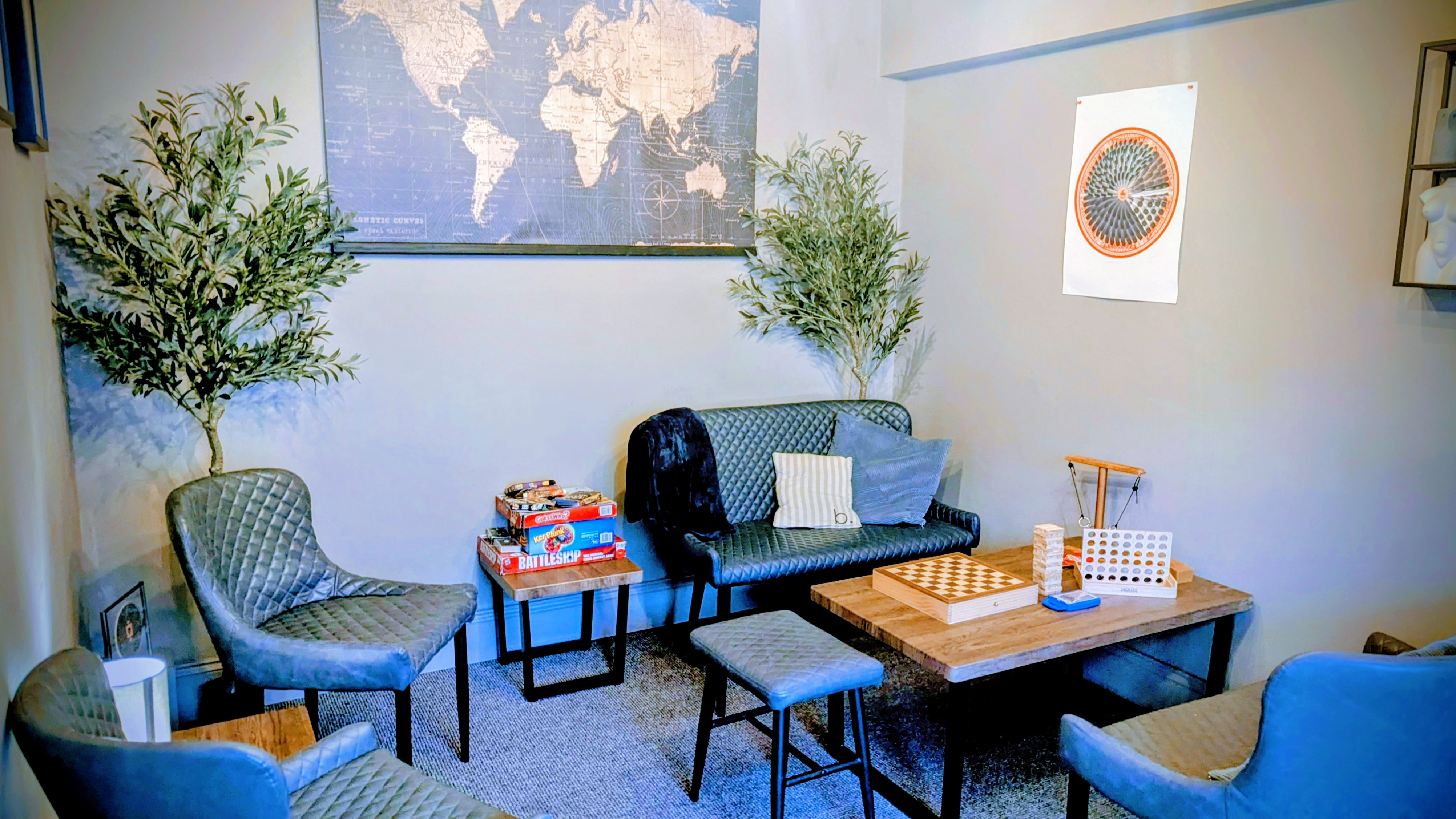 living room chic, varied seating and board games pitching this in neighbourhood bar territory,
