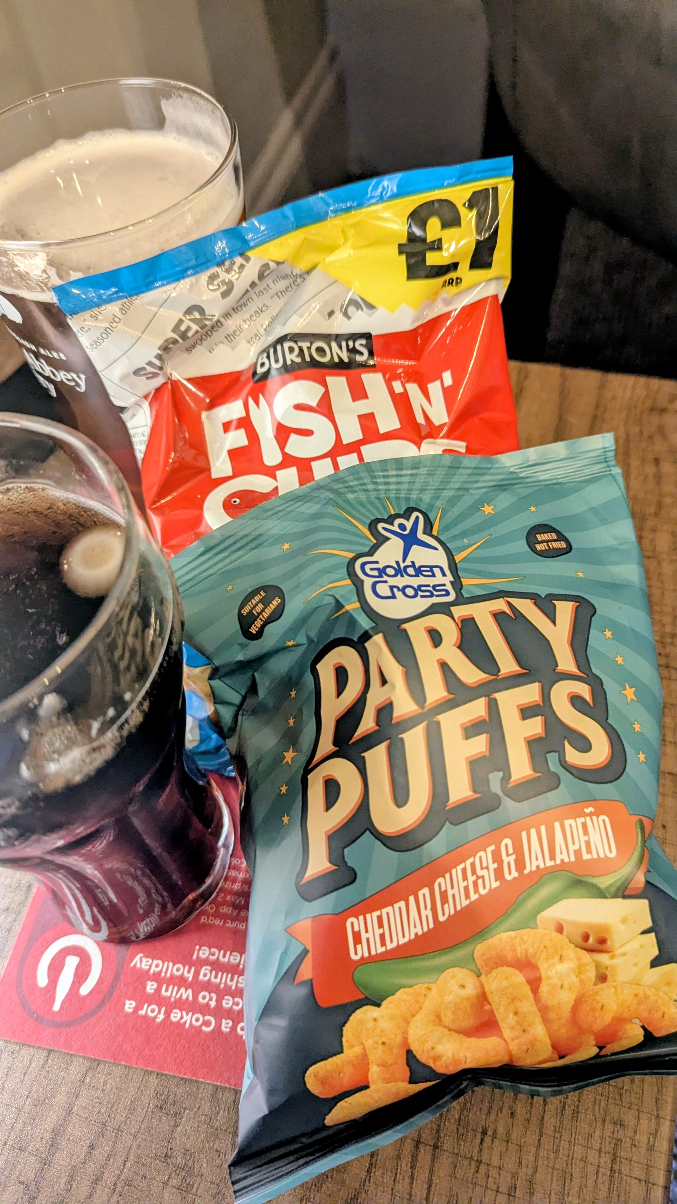Mrs RM goes Party Puffs, I opt for the fish biscuits first see in Wakefield (again).