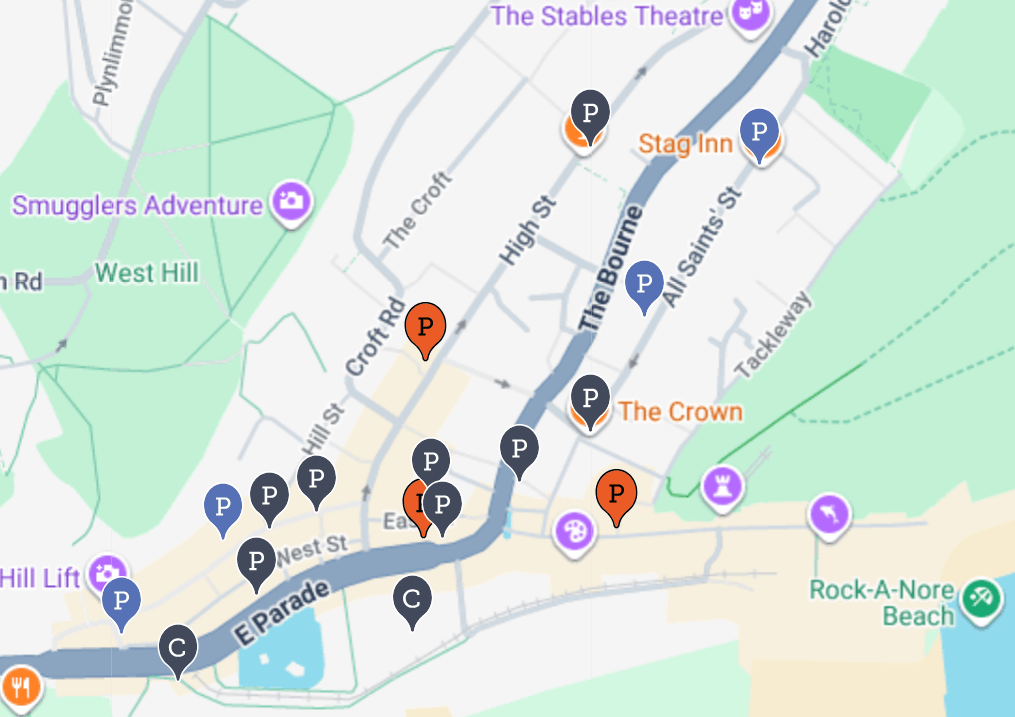 Look at those blue “P” markers above. Four (4) of them in Hastings Old Town alone (and a fifth, the Havelock, in New Town).