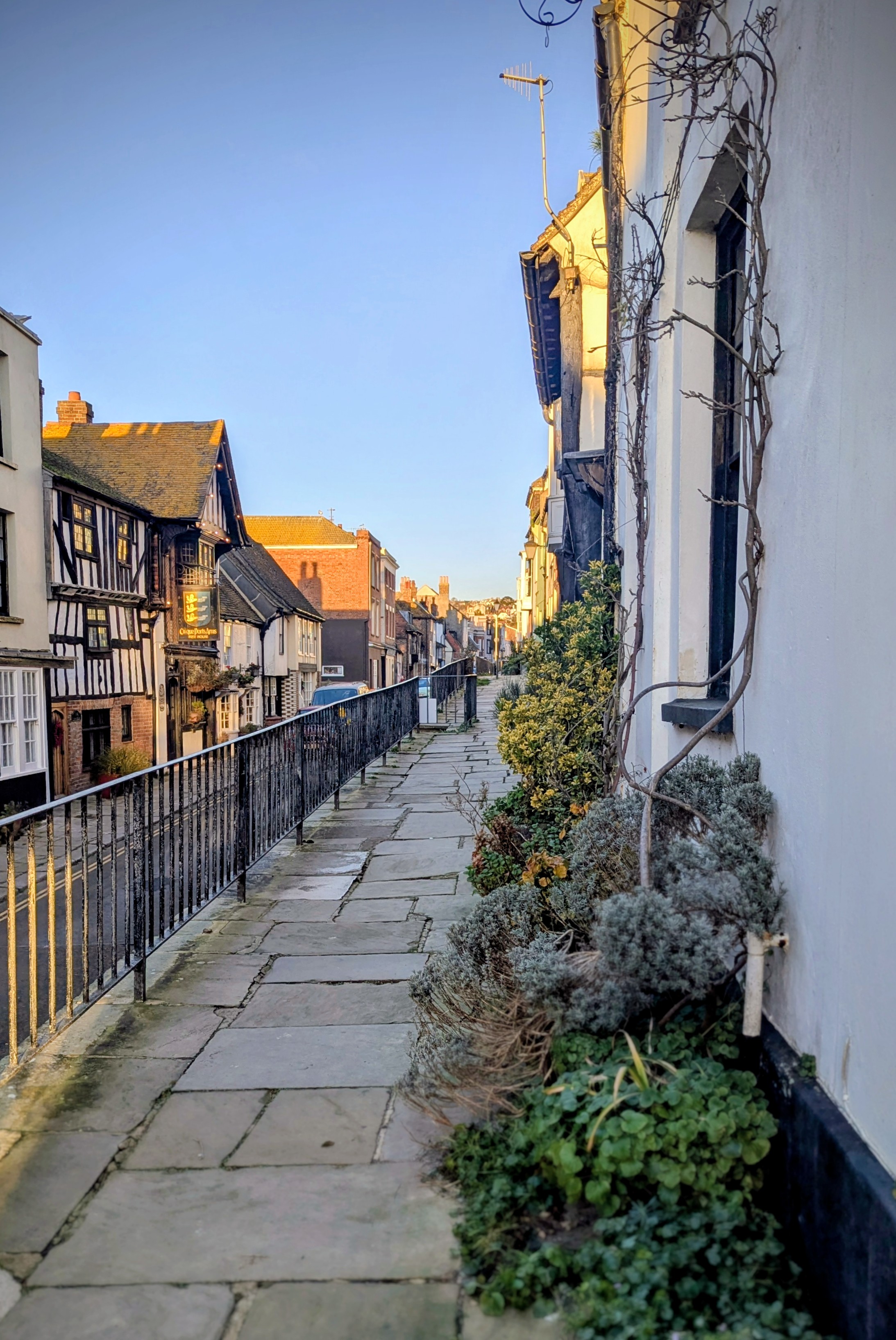 One of those lovely raised footpaths brings you to the Cinque Ports,