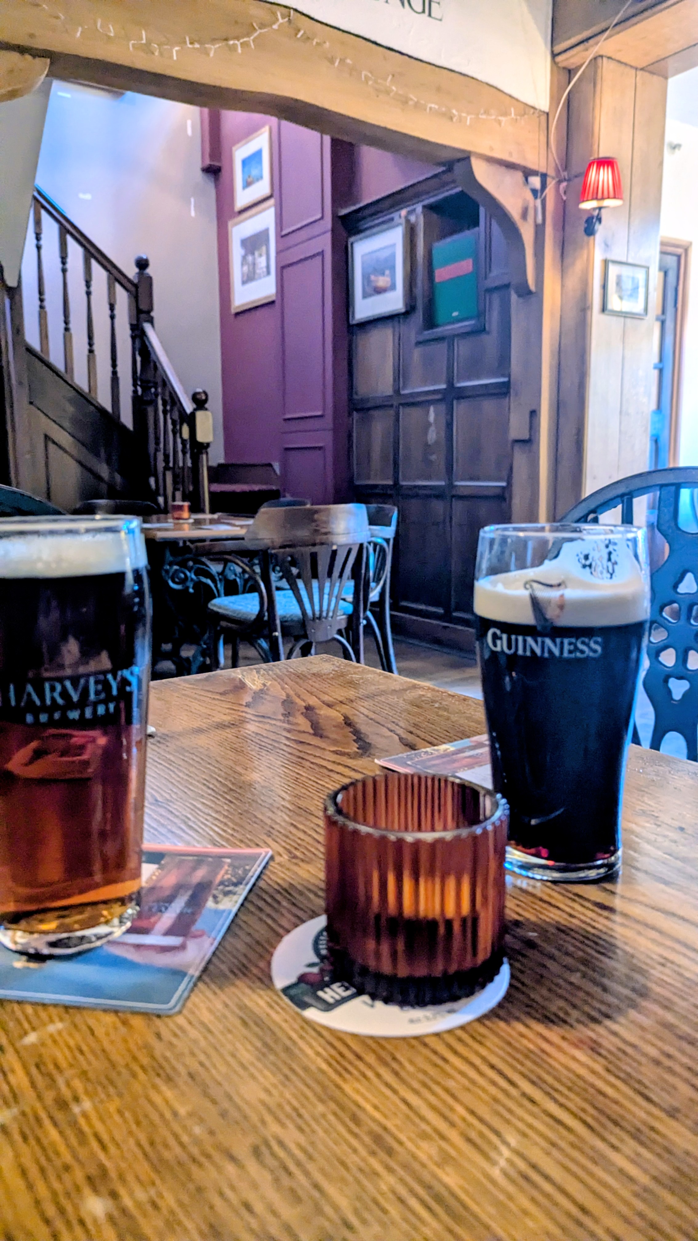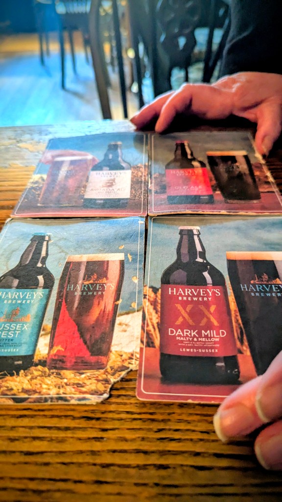 It slips down far, far too easily, and I help Mrs RM out with here Guinness, while she tries to complete the Harvey’s jigsaw from the beer mats.