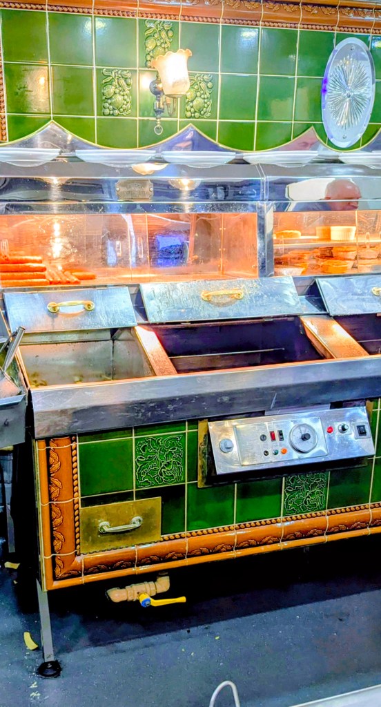 Suddenly famished, I make a rare pre-game stop at Tony’s Chippy, where the tiling is as good as any Black Country pub,