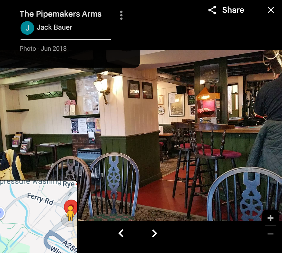 The Pipemakers looks the plain pub in town, the one with quizzes and live music and an “unmodernised” interior. It’s actually a Heritage building (blue “P” on the CAMRA pubs map), but as I have gentlefolk and children blocking my view of that heritage you’ll just have to settle with this old photo by Jack Bauer from the 17th season of “24”.