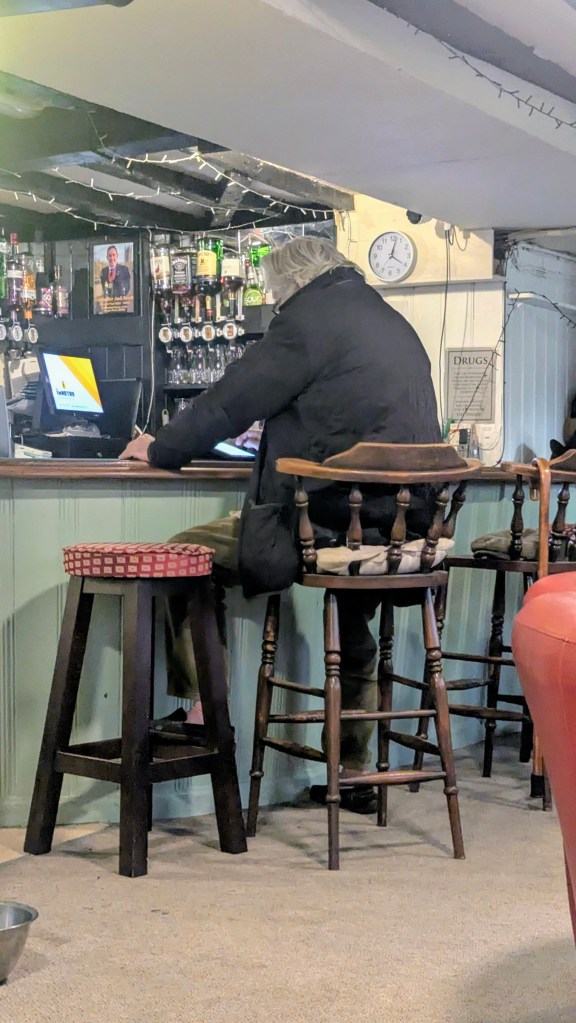 So my options are a) wait 40 minutes in the cold, b) have a pint in a warm pub then walk the 2 miles to the harbour. I mean, it’s not really a choice, is it ?