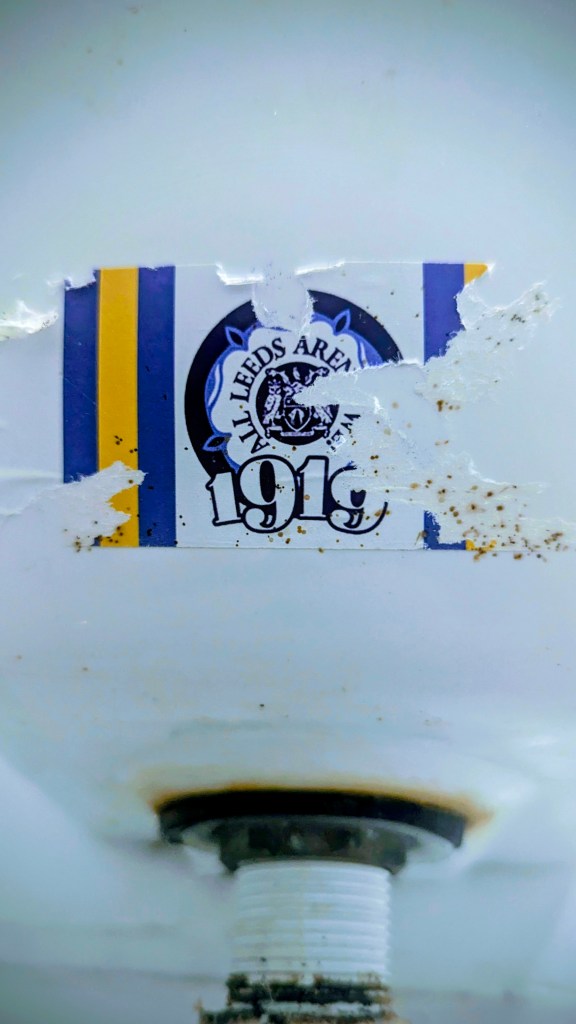 3. The torn sticker can’t disguise the fact that the slogan is “all Leeds aren’t we”. Which is not what I hear chanted in the South Stand at Headingley, or will do again when the Rugby League season starts in February, “all Leeds are we”. Which is ungrammatical as well as unconvincing.