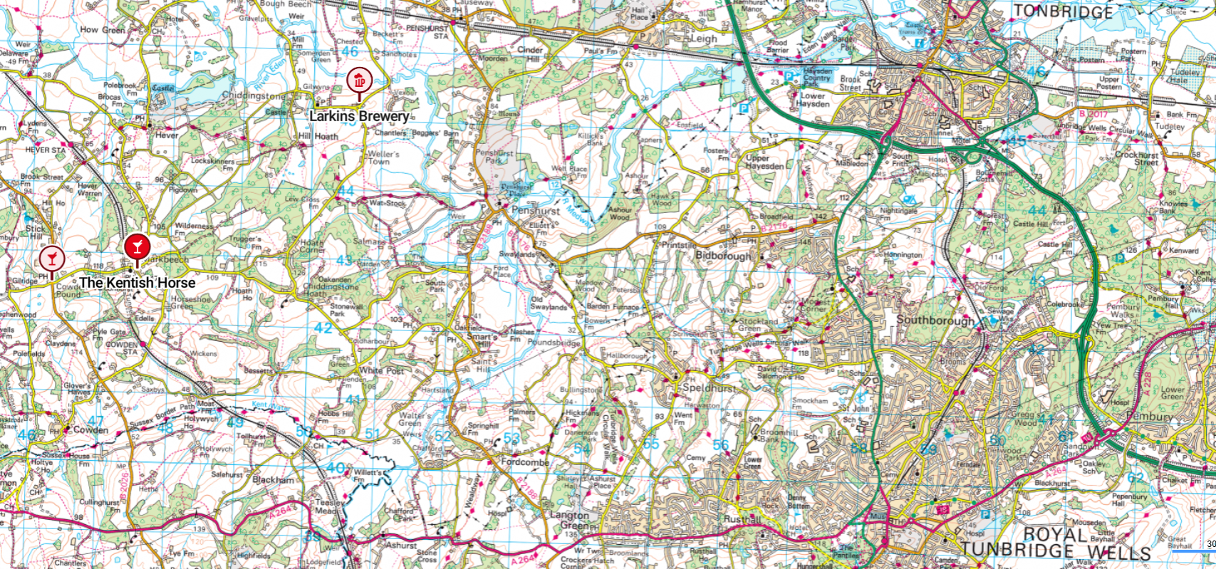 In summer, there’s a very pleasant walk from Cowden station to Mark Beech, and the Kentish Horse. I wouldn’t recommend it in winter, though. https://baileysbeerblog.blogspot.com/2009/08/sunday-in-high-weald.html