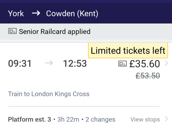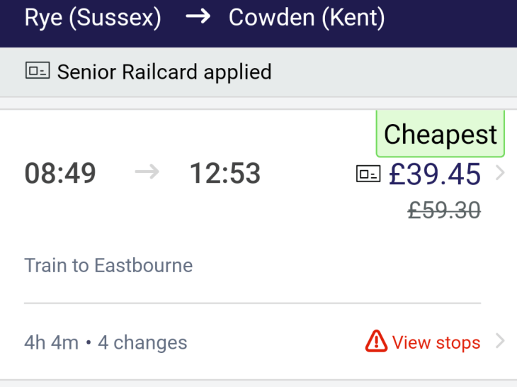 Four hours and four changes from the Kent border, quicker and cheaper for Simon from York.