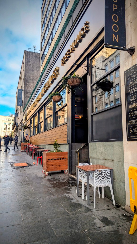 A night in Liverpool before Old Mudgie’s funeral on Friday in Widnes. He’d have been pleased with the last couple of Proper Pubs, and no doubt with the Excelsior across from my £24.99 Travelodge if I’d gone in, but I was done for the night by six.