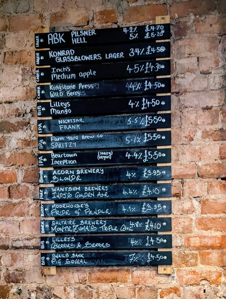 But beer tastes better in a pint glass, someone said that once, and a tasty but over-chilled Acorn Blonde (NBSS 3) for under £4 isn’t bad,