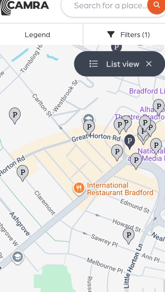 This is the extract from CAMRA’s marvellous pub guide showing the area west of the ring road. Note the grey “P“s.