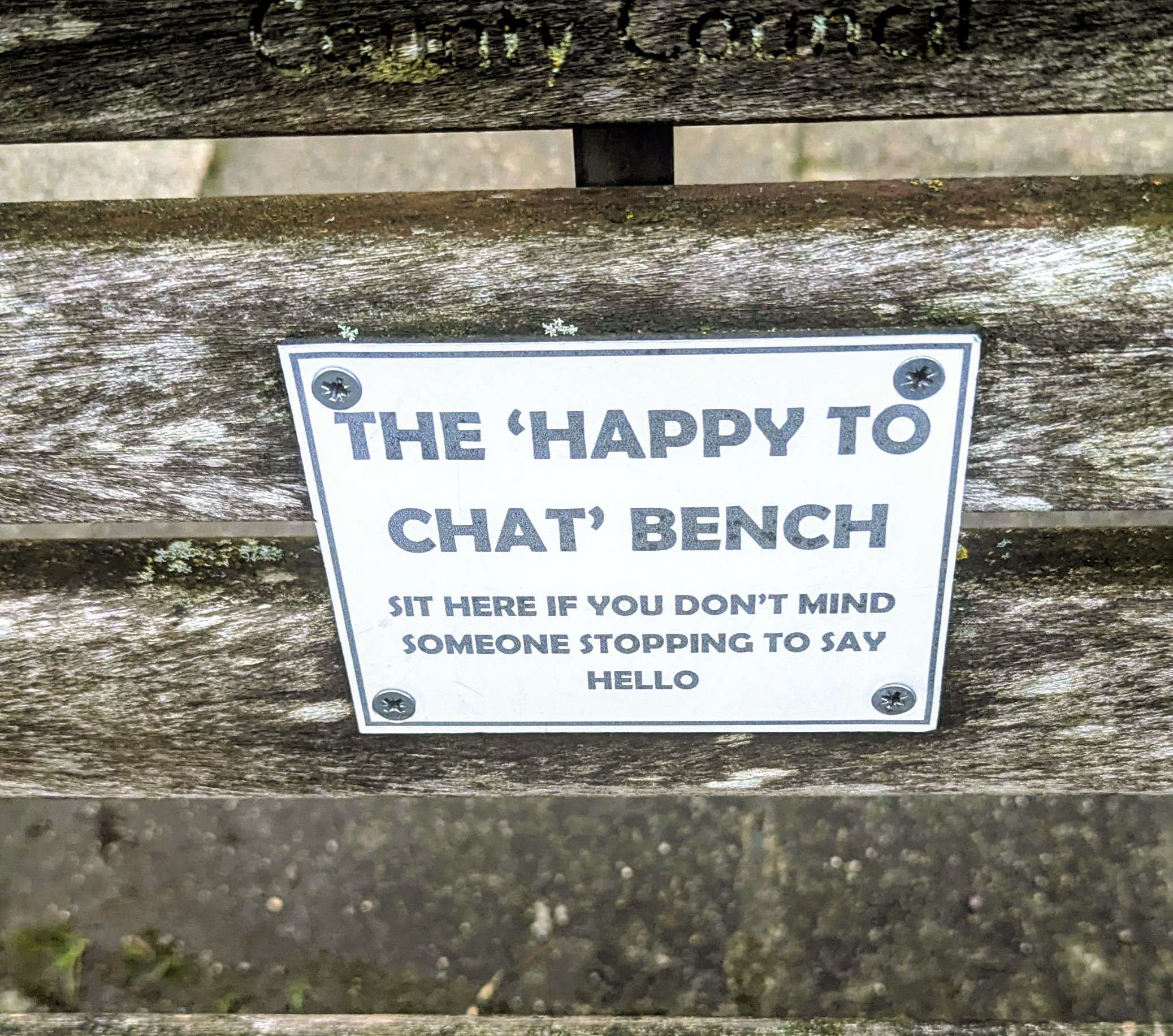 a street bench with a friendly sign,