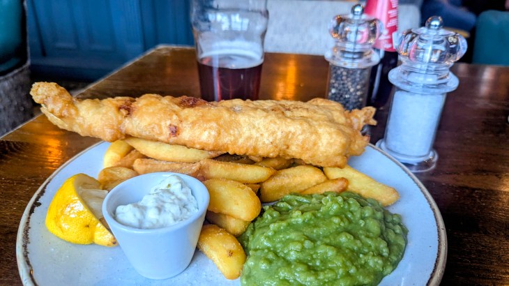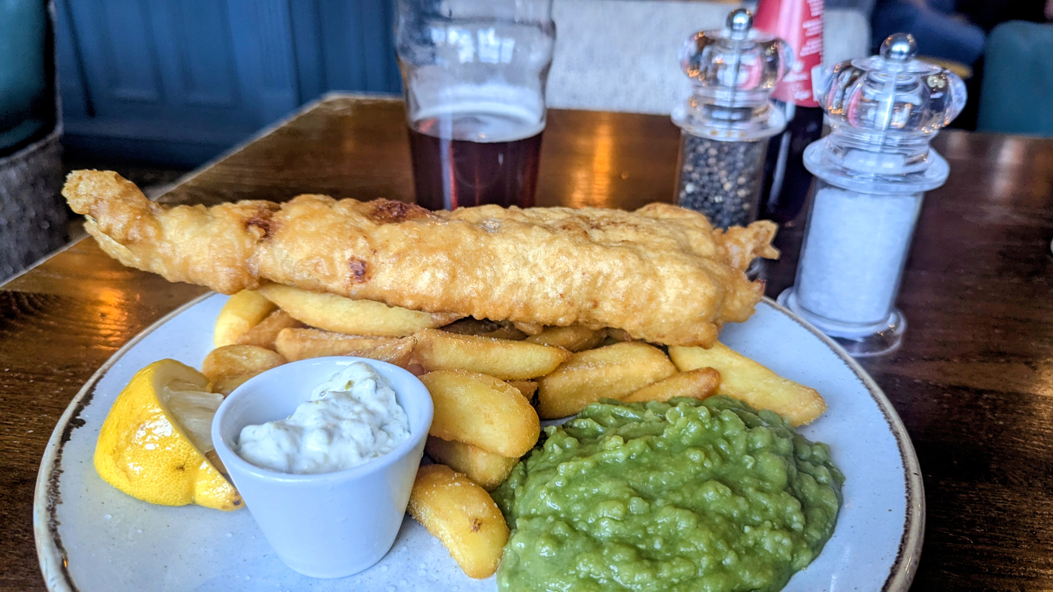 I’m always a bit conscious of scoffing a large plate of grub in front of non-diners, and besides, someone would have nicked those chips. I’d rather they stole the fish, was a minute or so overcooked, but I’m not one for complaining.