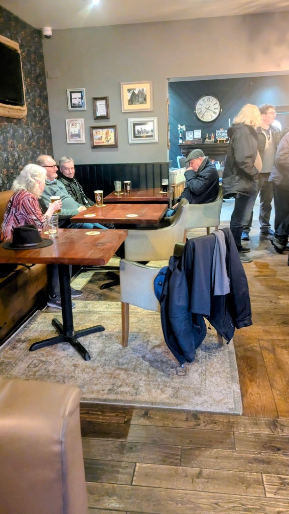 Our intrepid Magnificent Seven pub men lasted almost as long in the pubs of Radcliffe, and Will even braved the village’s “Lounge” copy, Atrium scoring a decent 6.