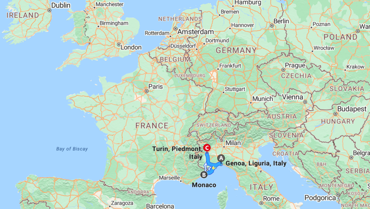 our target after a 20 minute bus trip from one of our quieter European airports. Incidentally, lovely passport control staff at Genoa, who laughed when Mrs RM failed to provide a fingerprint for the new EU entry/exit system as they’ve worn away from too much blogging.