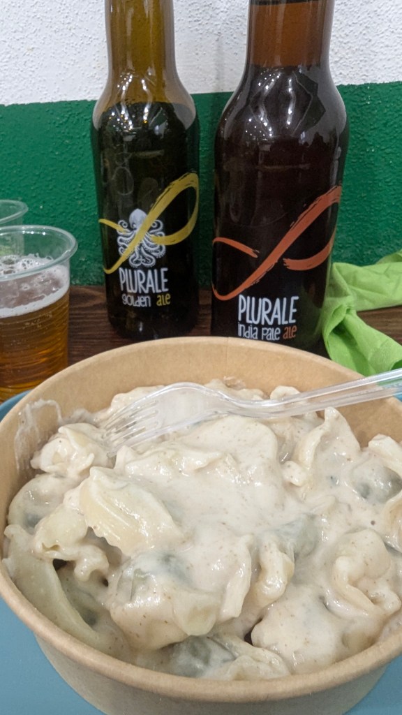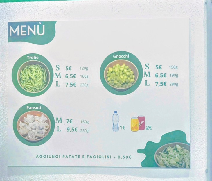 Freshly made behind the counter, served in boxed for under £6, washed down with excellent craft beer from the Ligurian hills.