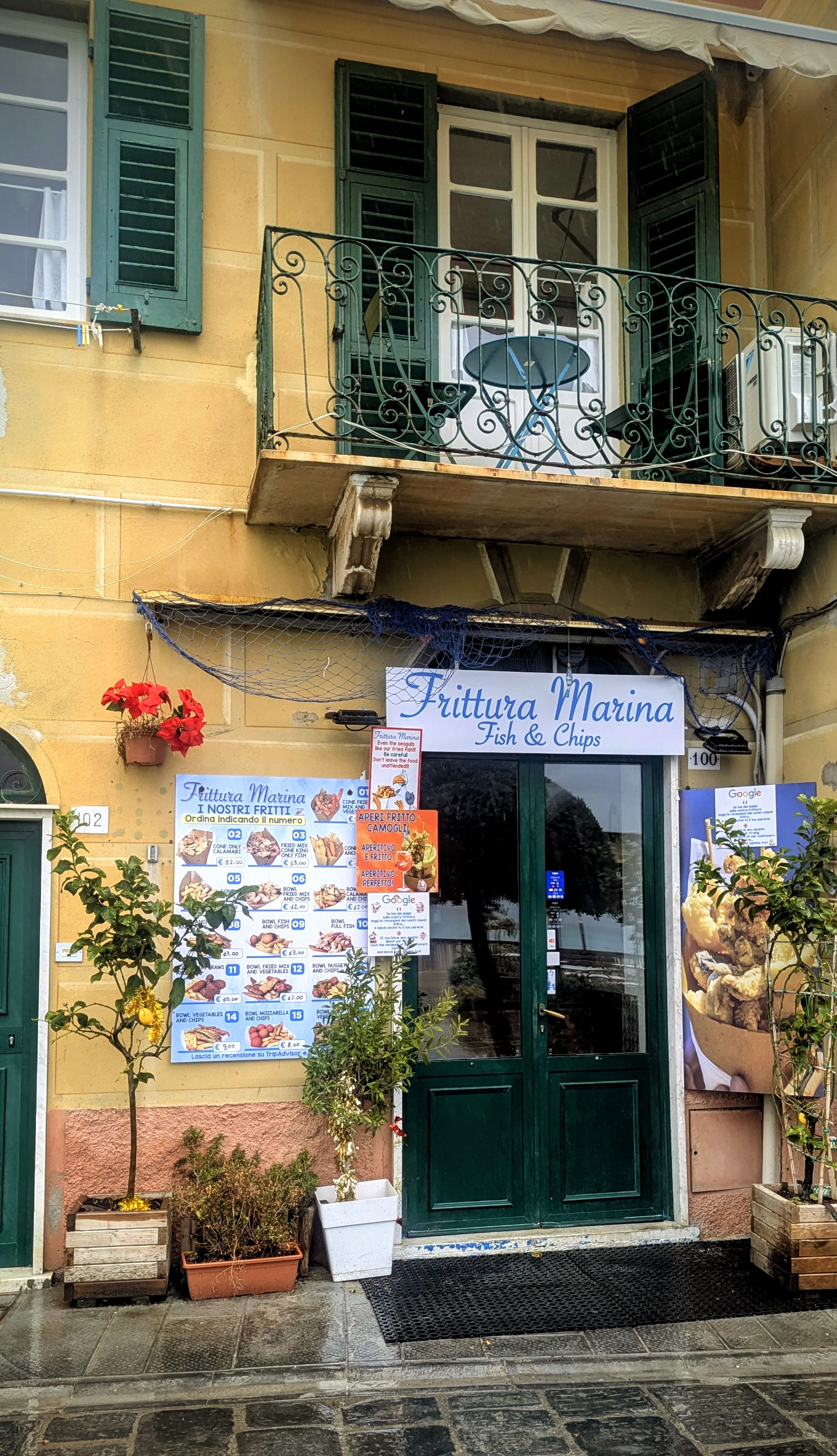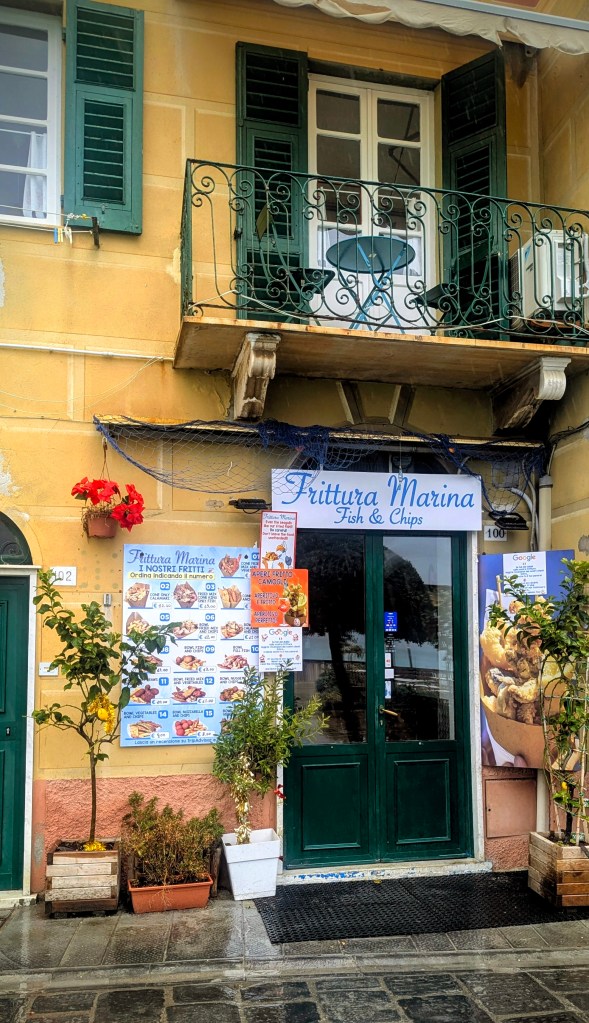 A half hour from Genova Principe on Trenitalia’s clean, cheap and spacious trains, with rain lashing against the coast, and two begraggled tourists looking for a picturesque lunch.