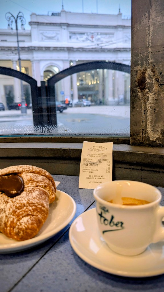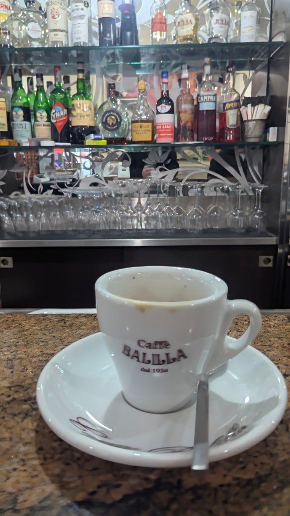 and I was fascinated to see how inflation had affected the price of the iconic “caffè, por favor thanks“. In the smart Mentelocale Bistrot at the station each morning we’d have an espresso, cappuccino and a couple of croissants for about six quid,
