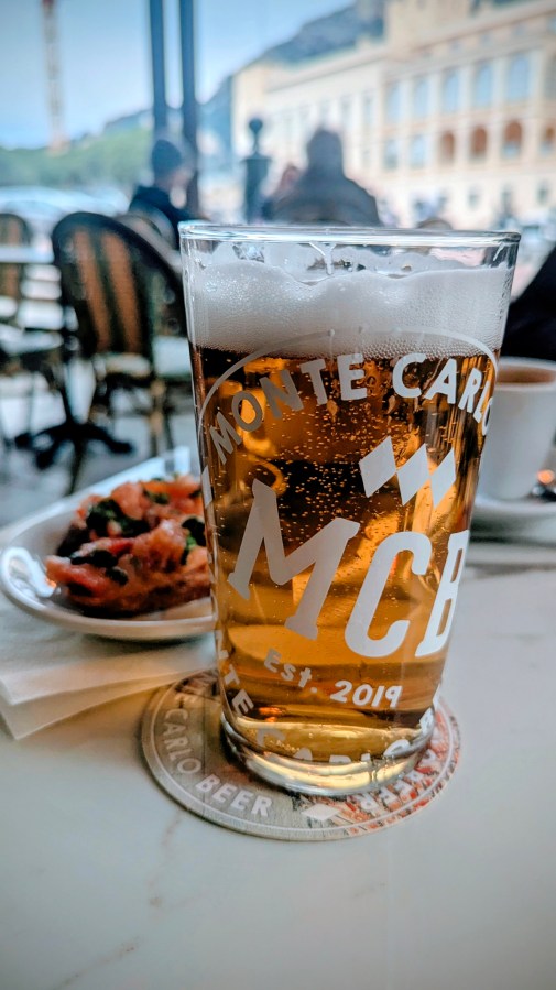 OK, 12 euros a “pint”, and the Monte Carlo beer (top) is actually brewed over the border (get on the provenance case, French CAMRA), but you get a couple of these lovely little tapas thrown in.