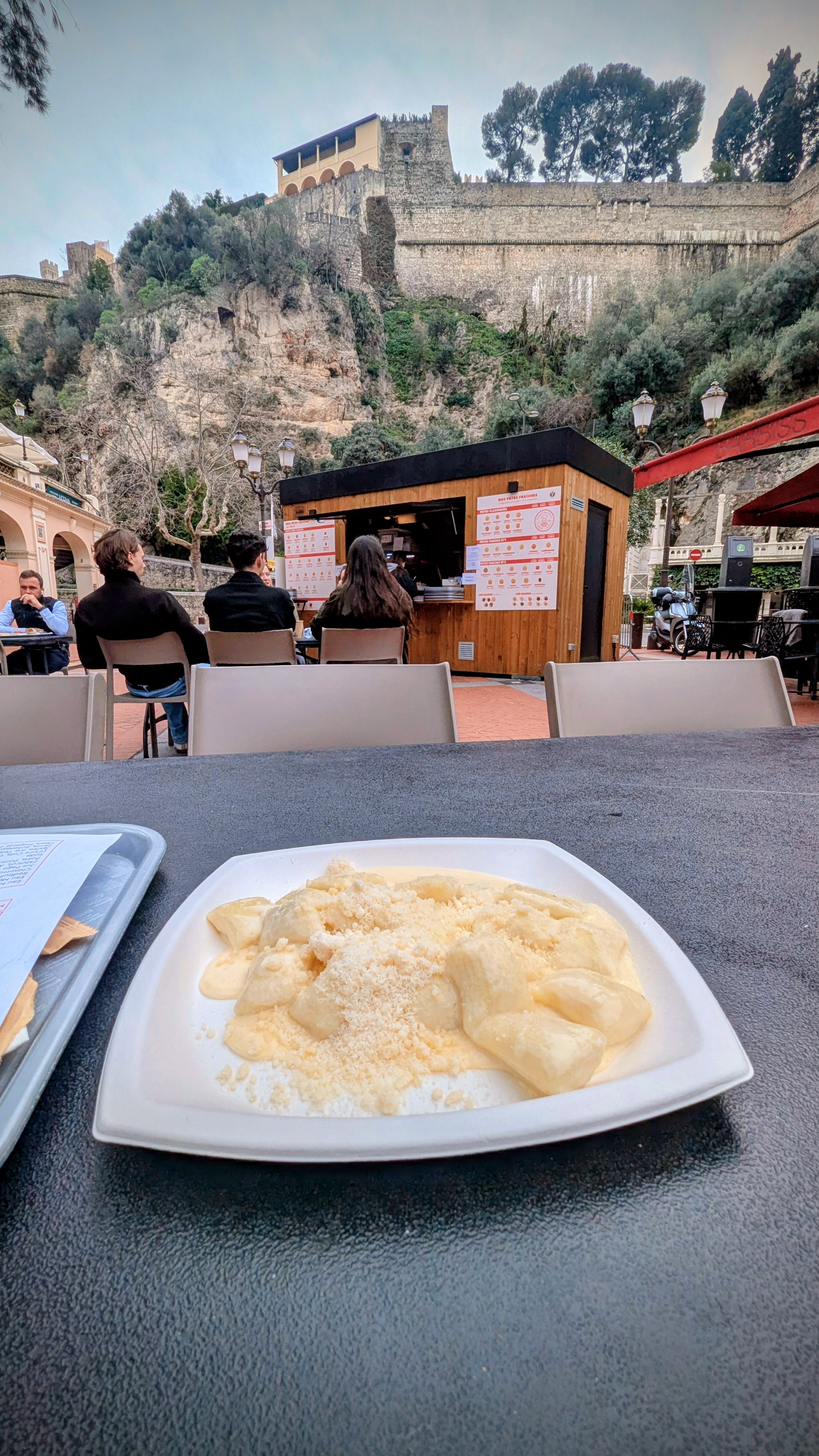 The Maison des Pâtes Condamine has big plates of fresh cheesy pasta for a tenner, and an abundance of pigeons to help you finish it.